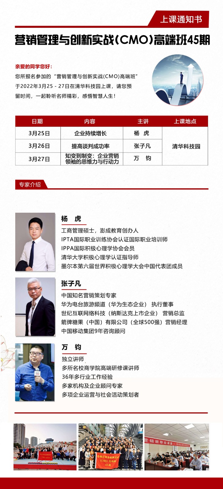 2022年3月清大营销管理与创新实战cmo班课程安排: