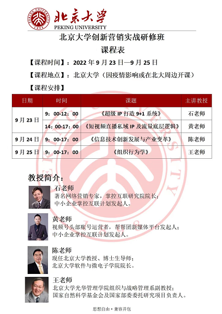 北京大学创新营销实战研修班2022年9月开课通知
